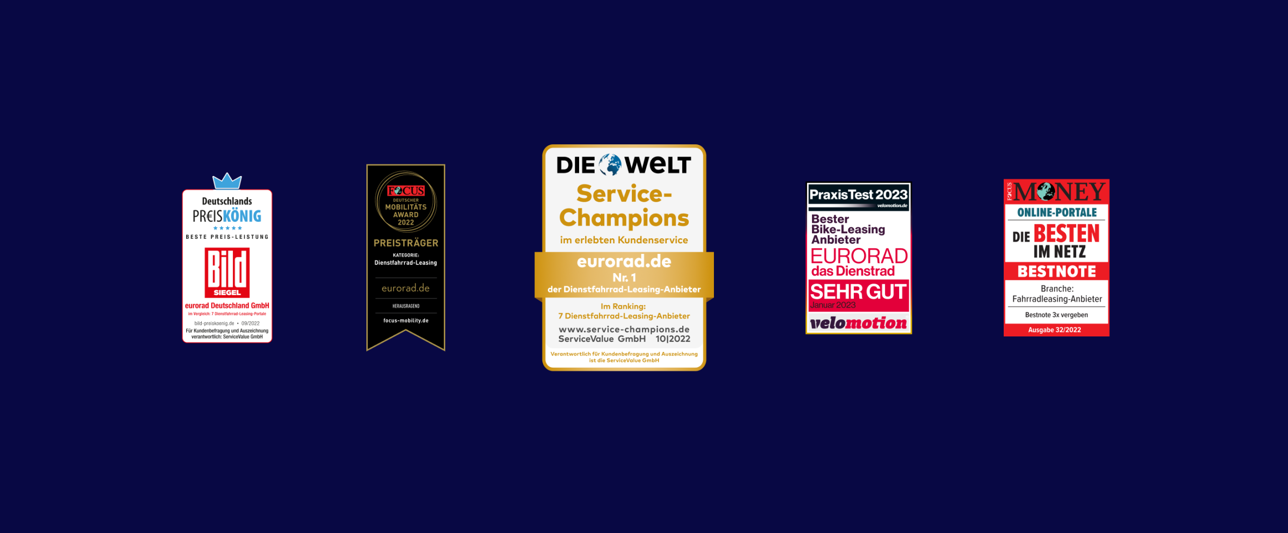 Bei aktuellen Vergleichstests ist eurorad immer wieder als Sieger hervorgegangen und von Magazinen wie Focus und Velomotion zum besten Bikeleasing-Anbieter gekürt worden. Entscheide dich für das Dienstrad Leasing beim Testsieger.