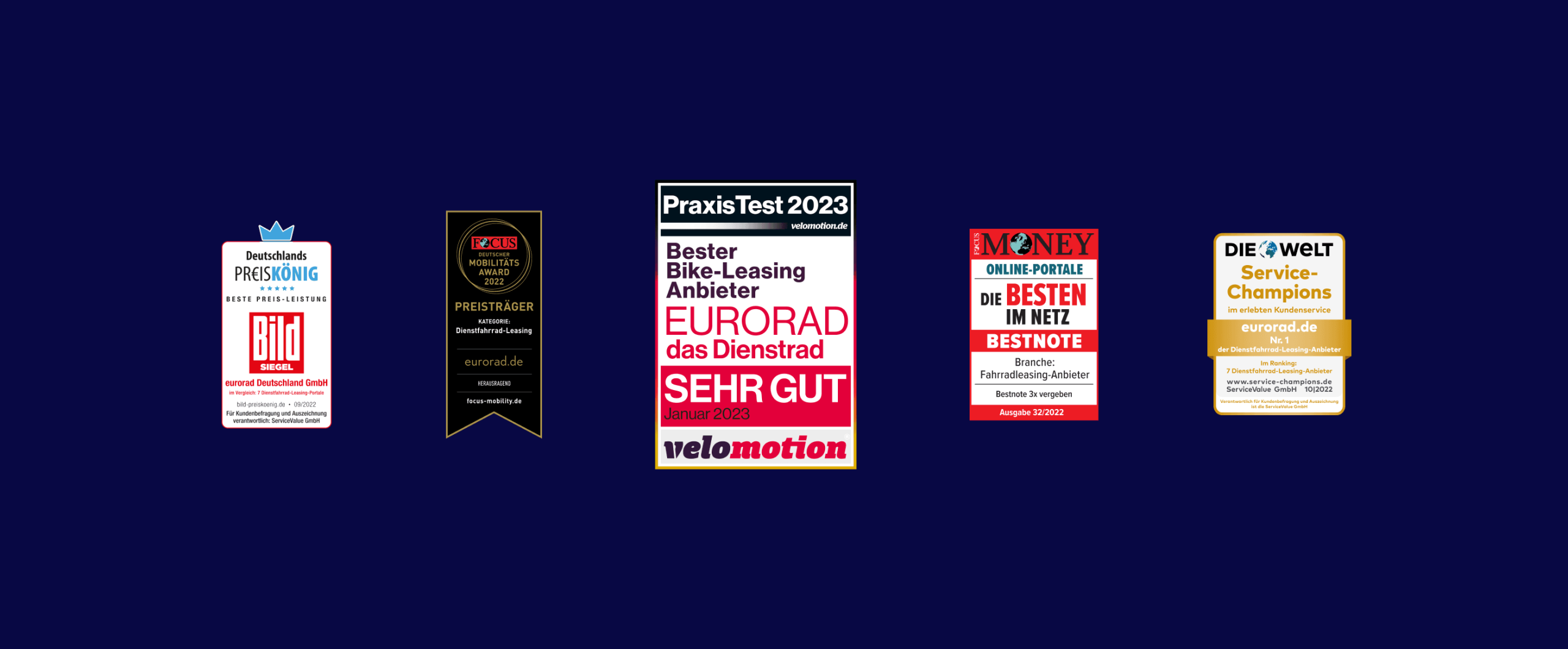 Auszeichnung für eurorad eurorad wurde von verschiedenen Testberichten als bester Bike-Leasing-Anbieter gekürt! Die Tageszeitung DIE WELT, das Magazin FOCUS MONEY mit dem Deutschland-Test und das Fahrrad-Magazin velomotion.de...
